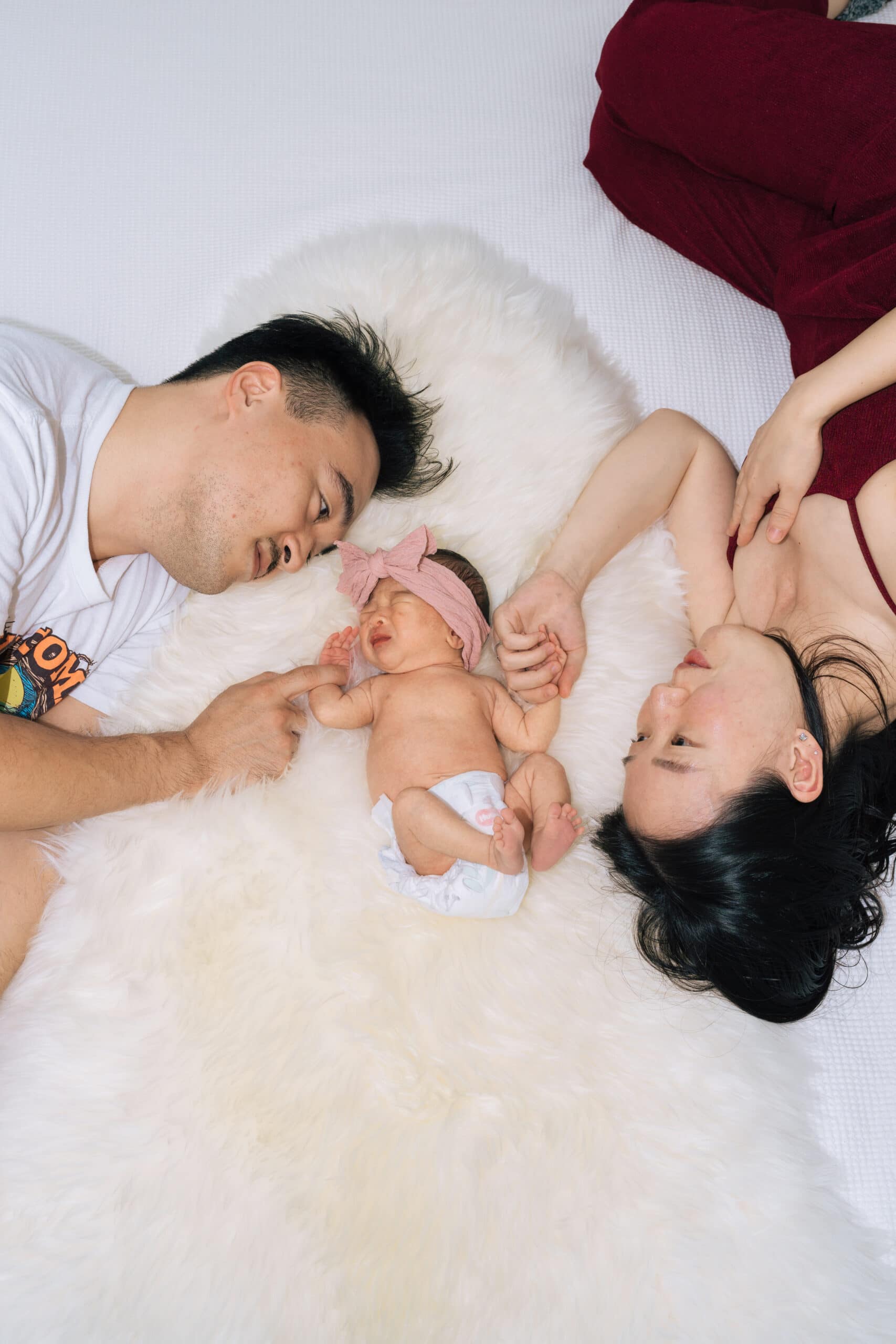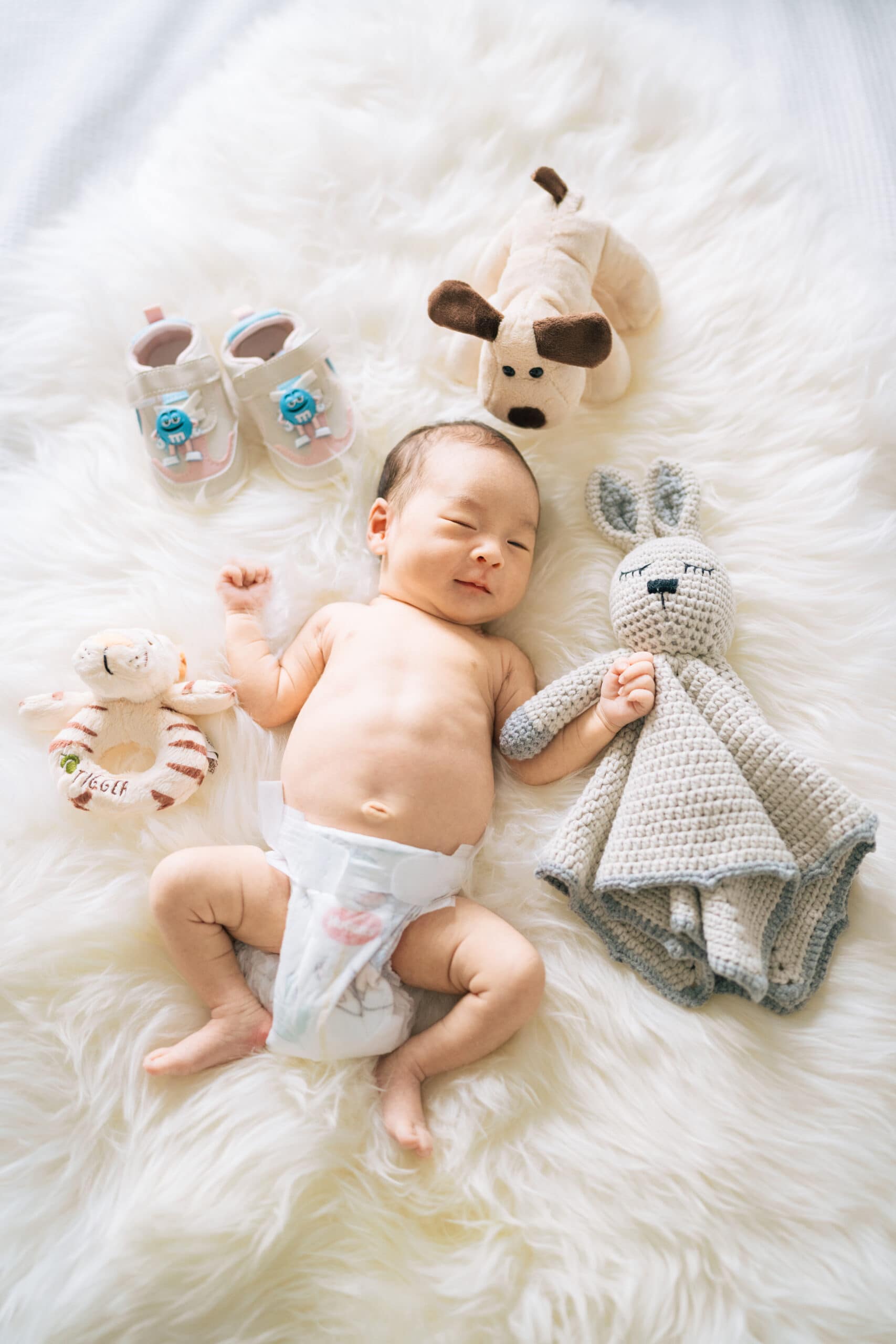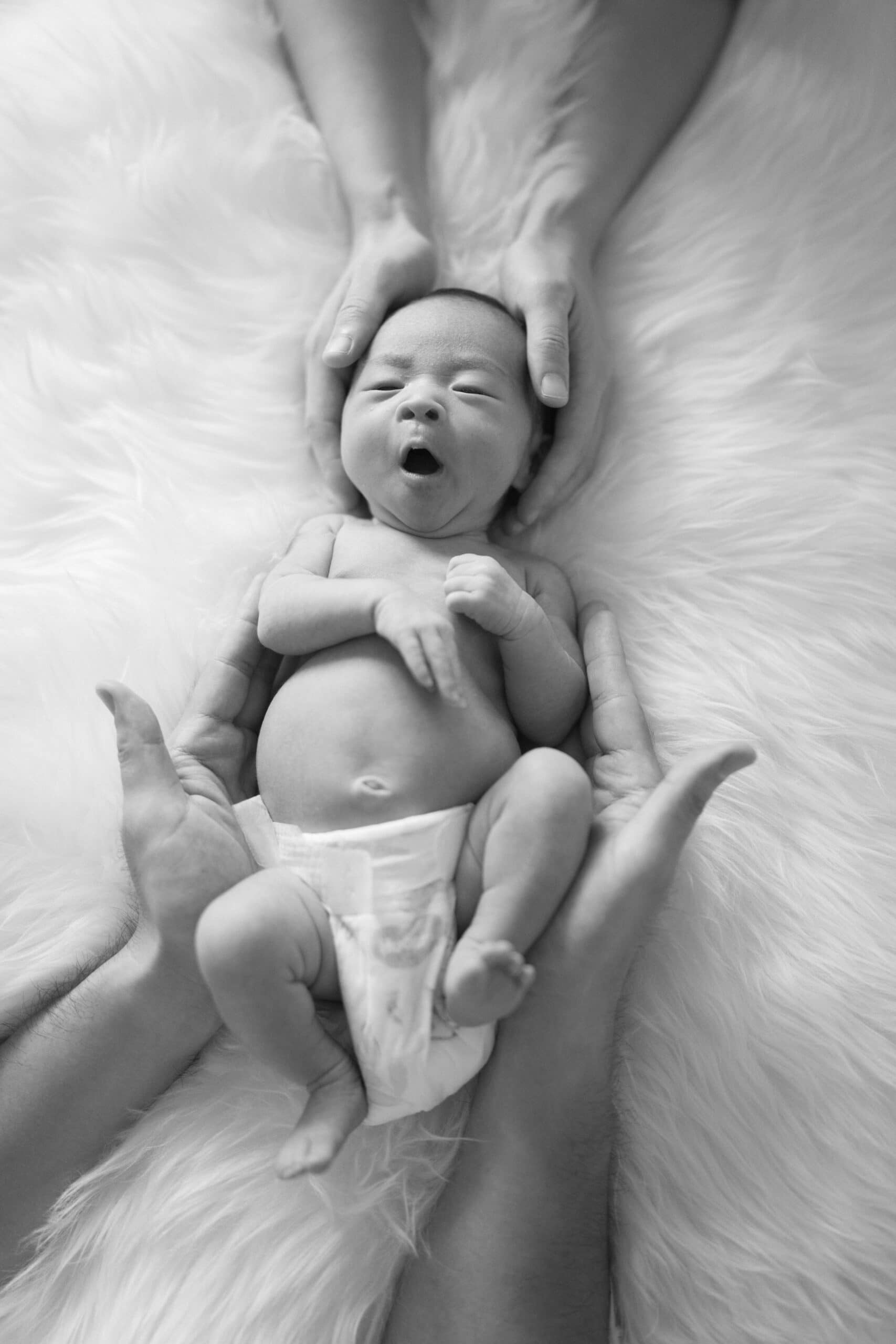 Newborn sessions typically last between 1.5 to 2 hours. I follow your baby’s lead, allowing time for feeding, cuddles, and breaks. Everything moves at a calm pace, so the session feels gentle and stress-free for both baby and parents.